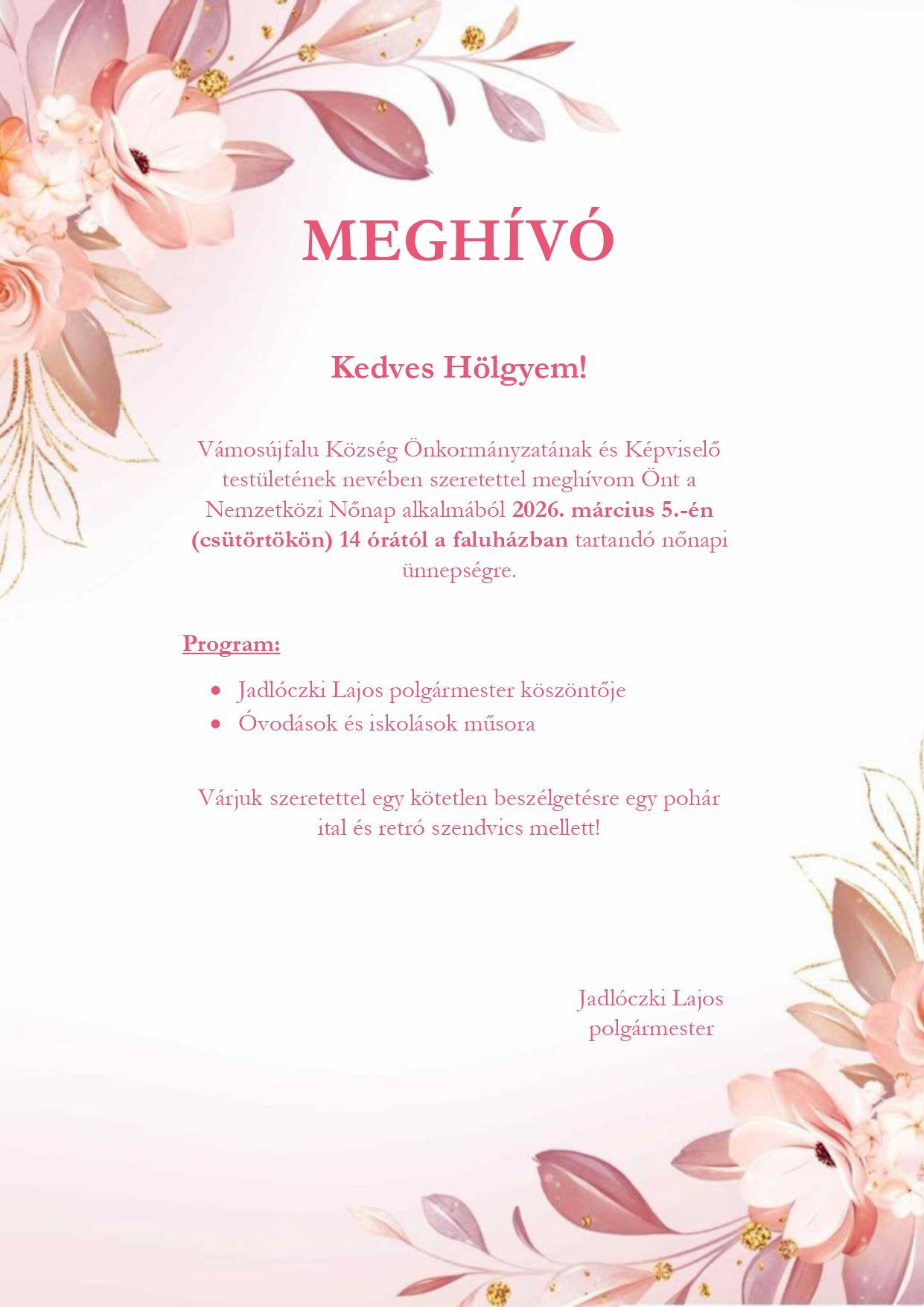 EFOP-3.7.3-16-2017-00258 AZ EGÉSZ ÉLETEN ÁT TARTÓ TANULÁSHOZ VALÓ HOZZÁFÉRÉS BIZTOSÍTÁSA VÁMOSÚJFALUN